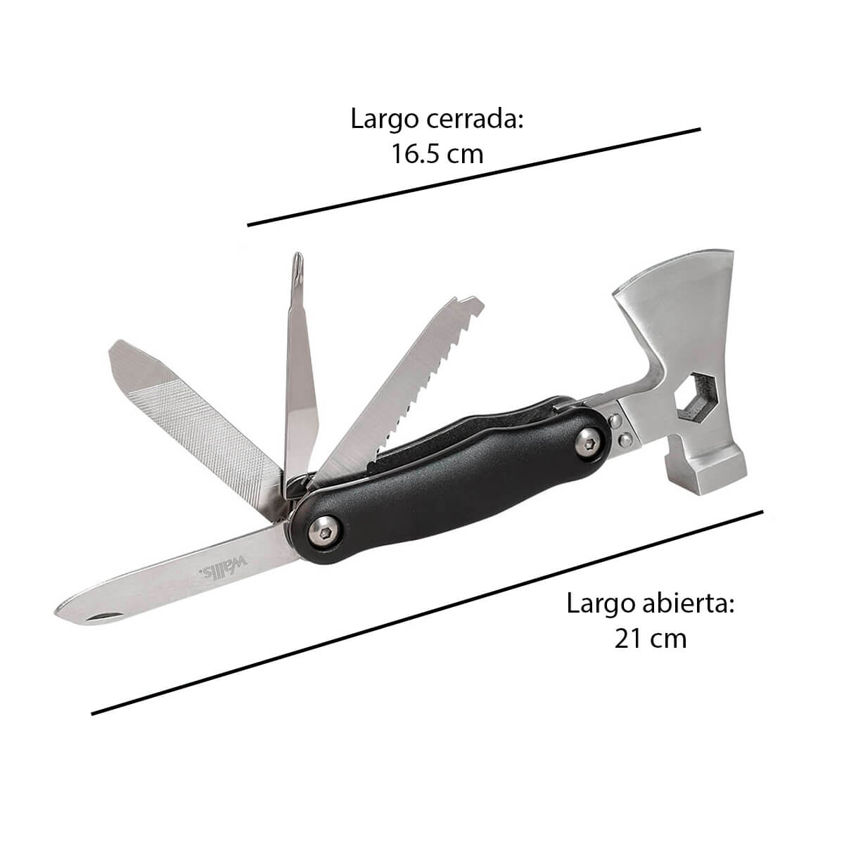 ¡Haz espacio para nuestra multiherramienta de acero inoxidable Wallis! Equipada con 11 funciones ingeniosas, esta maravilla versátil se adapta a cualquier desafío, es la compañera perfecta para cualquier entusiasta del bricolaje o aventurero. Además, tiene una funda resistente para que la lleves contigo a donde vayas, garantizando que siempre tengas el equipo adecuado a tu alcance. No sacrifiques la calidad, elige nuestra multiherramienta Wallis.