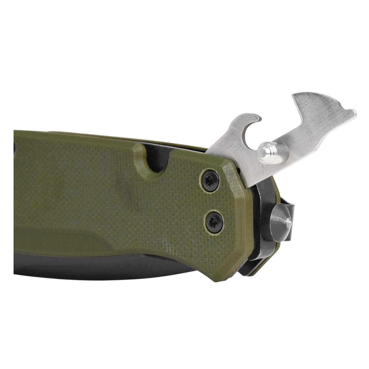 Potencia, seguridad y versatilidad en una sola herramienta. Diseñada para quienes buscan rendimiento, durabilidad y estilo, esta navaja de bloqueo es el compañero perfecto tanto para el uso diario como para actividades al aire libre. Fabricada en acero inoxidable, ofrece una hoja lisa de corte preciso y resistente, ideal para diversas tareas. La hoja cuenta con una cremallera tipo sierra en la parte superior, que mejora la sujeción y el control durante el corte, brindando una experiencia segura y cómoda incluso en condiciones exigentes. El mango de G10 verde combina resistencia, ligereza y un excelente agarre antideslizante, además de incluir clip metálico lateral para un transporte práctico. Este diseño incorpora también dos funciones adicionales que aumentan su utilidad: 1. Punta rompe vidrios, ideal para emergencias o rescate. 2. Abrelatas, perfecta para campismo o actividades de aventura. Su bloqueo manual con tornillo de apoyo asegura máxima estabilidad y seguridad, evitando cierres accidentales y ofreciendo confianza total en cada uso. Con una estructura equilibrada y ergonómica, esta navaja ofrece potencia en un formato compacto, ideal para quienes necesitan una herramienta práctica y multifuncional. Perfecta para quienes buscan una navaja resistente, segura y multifuncional, con el equilibrio ideal entre estilo, rendimiento y practicidad.