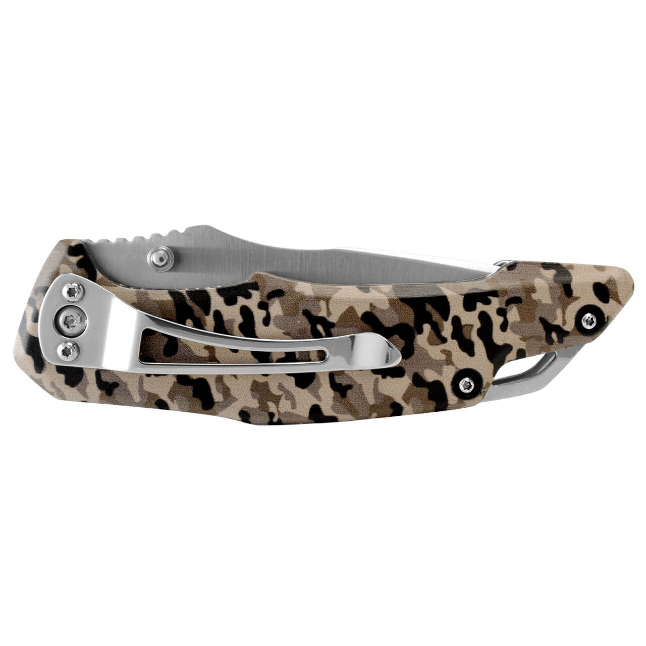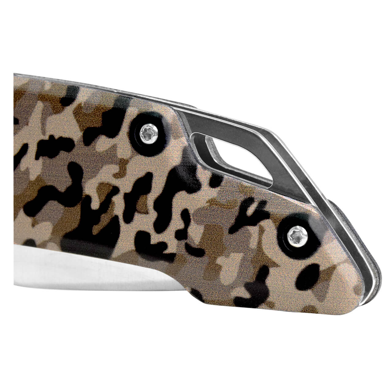Diseñada para quienes valoran la precisión, la durabilidad y el estilo camuflaje, esta navaja de bloqueo está fabricada para quienes buscan rendimiento confiable en cada uso. Su hoja de acero inoxidable ofrece un filo duradero y una excelente capacidad de corte, ideal para tareas exigentes tanto en exteriores como en el día a día. La hoja lisa cuenta con una cremallera tipo sierra en la parte superior, que mejora la sujeción y el control al cortar, brindando un manejo más firme y seguro incluso en condiciones difíciles. El mango de aluminio con diseño de camuflaje destaca por su gran resistencia, ligereza y agarre ergonómico. Además, incorpora un clip metálico para sujetarla al cinturón o bolsillo, y un orificio para cuerda o cordón, lo que facilita su transporte y personalización. Su sistema de bloqueo manual con tornillo de apoyo garantiza máxima seguridad al usarla, evitando cierres accidentales y asegurando un desempeño estable en todo momento. Esta navaja ofrece una sensación robusta pero cómoda, ideal para aventuras, camping, trabajo o uso cotidiano. Perfecta para quienes buscan una navaja resistente, moderna y confiable, con el equilibrio ideal entre potencia, diseño y seguridad.