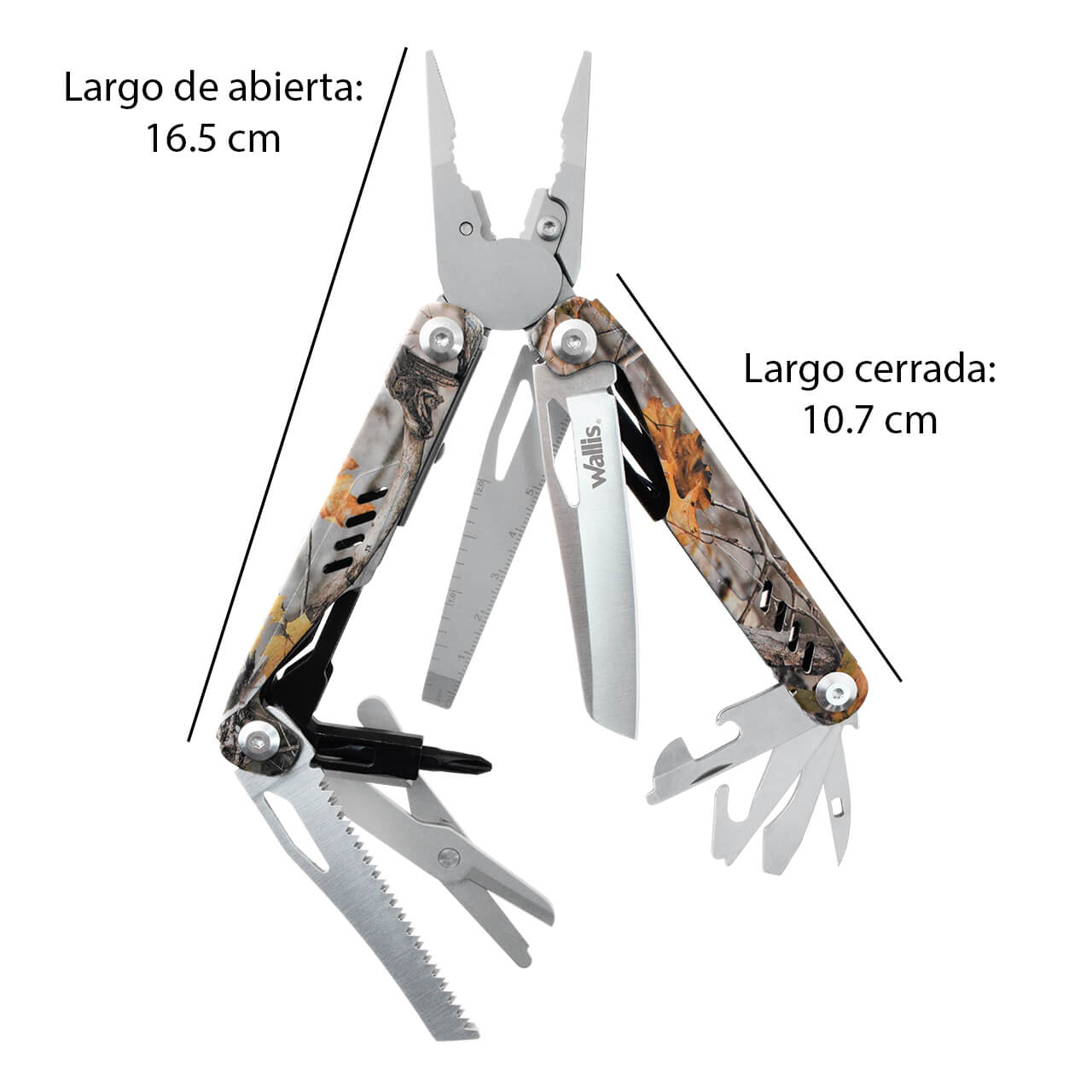 Diseñada para quienes valoran la practicidad, la resistencia y la precisión en cada detalle, esta multiherramienta profesional combina funcionalidad y durabilidad en un formato compacto y ergonómico. Fabricada con acero inoxidable, garantiza un rendimiento óptimo incluso en las tareas más exigentes. Ventajas destacadas: compacta y ligera, fácil de llevar en cualquier situación; diseño robusto y ergonómico que ofrece control y comodidad; construcción en acero inoxidable para máxima resistencia a la corrosión; versatilidad absoluta: ideal para campismo, caza, reparaciones, automotriz o uso cotidiano. Es perfecta para aventureros, técnicos, campistas o cualquier persona que necesite una herramienta confiable siempre a mano. Ya sea que estés en la cima de una montaña, reparando tu equipo en medio del camino, disfrutando de una fogata, para reparaciones en la casa o para tu trabajo, esta multiherramienta te da confianza, control y poder en cada movimiento. Compacta, resistente y lista para la acción: todo lo que necesitas en una sola mano. Tu compañera ideal para explorar sin límites.