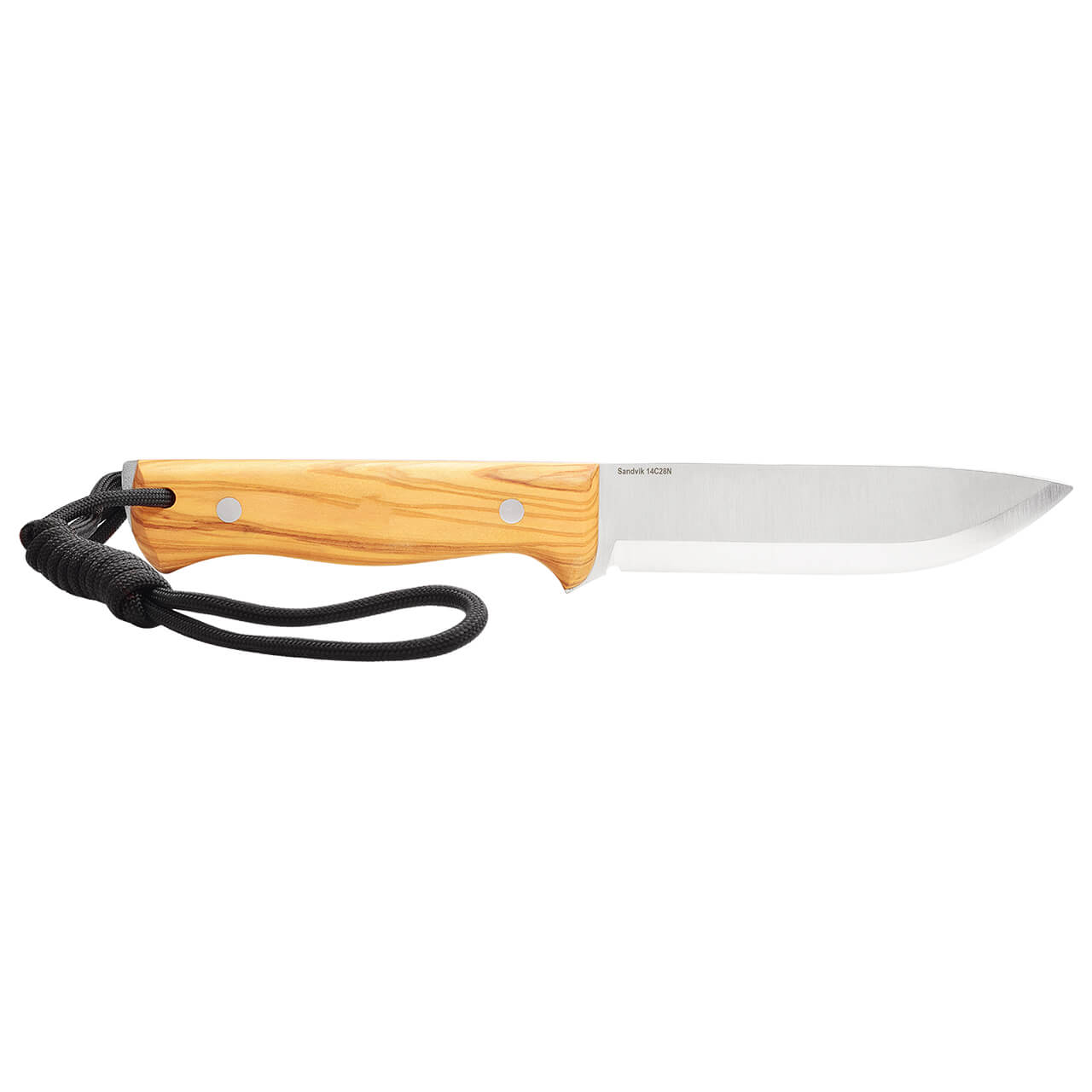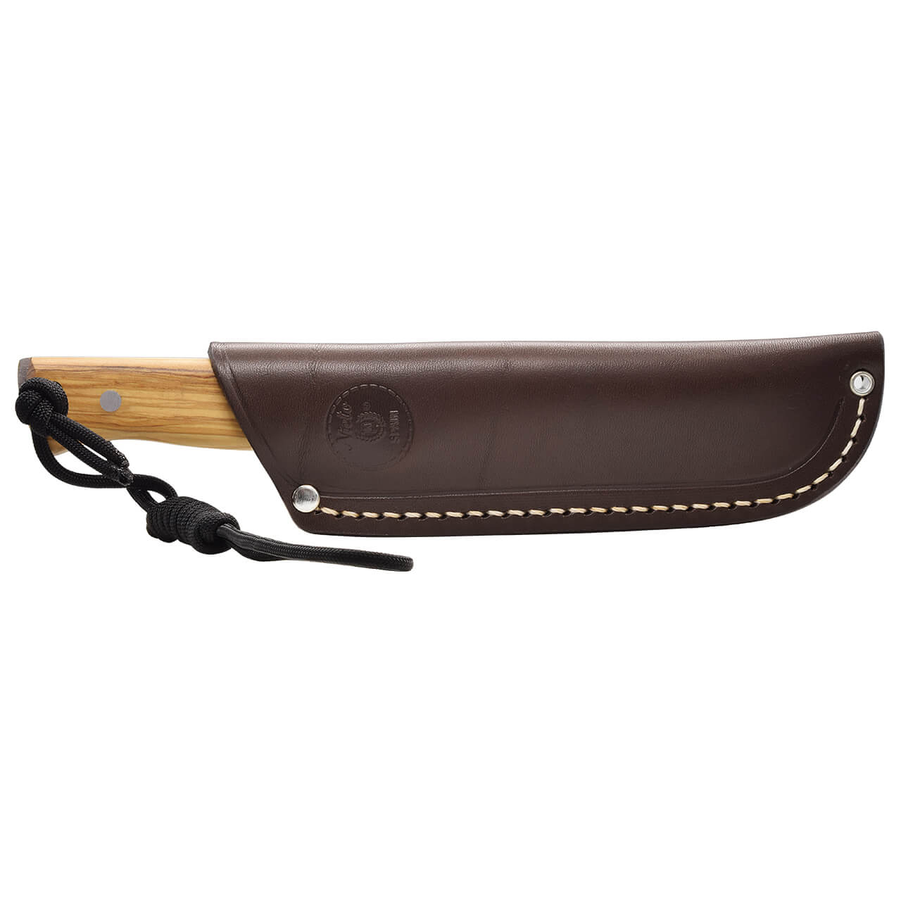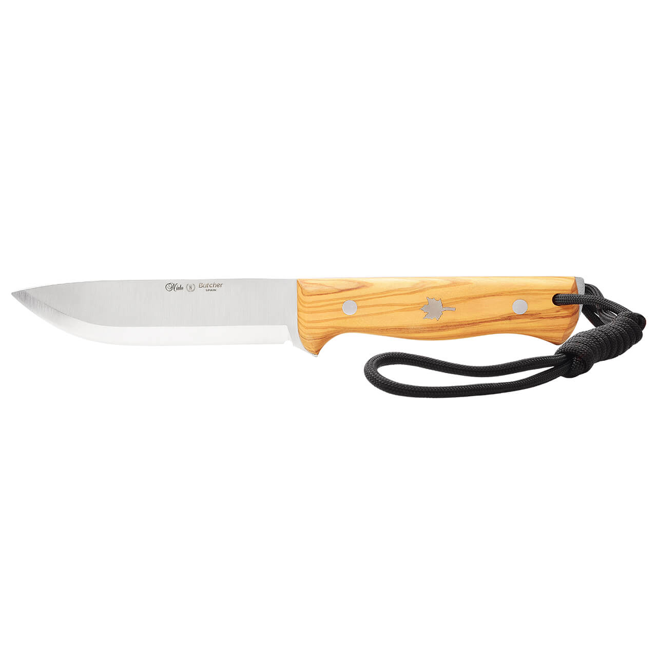 Cuchillo "Butcher" con mango madera natural de olivo, con funda de cuero, acero inoxidable Sandvik, dureza 14c28n